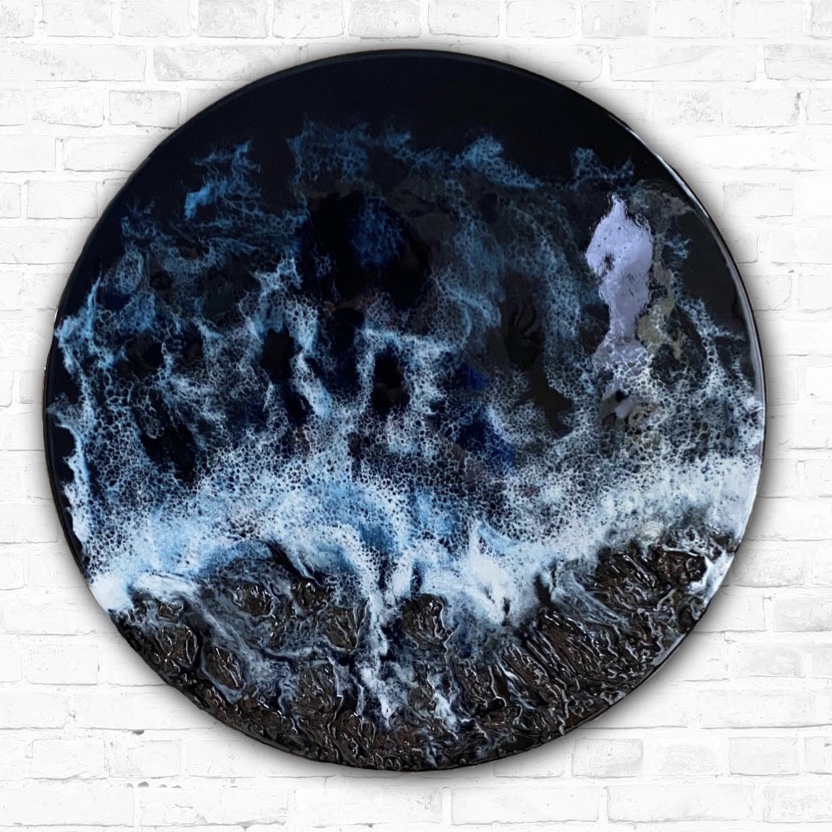 Night Ocean 2 – multimedia painting on 18″ MDF