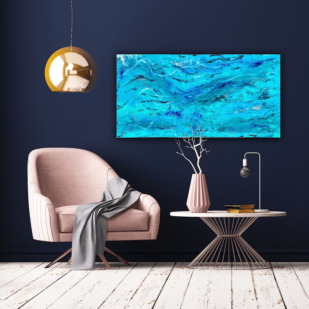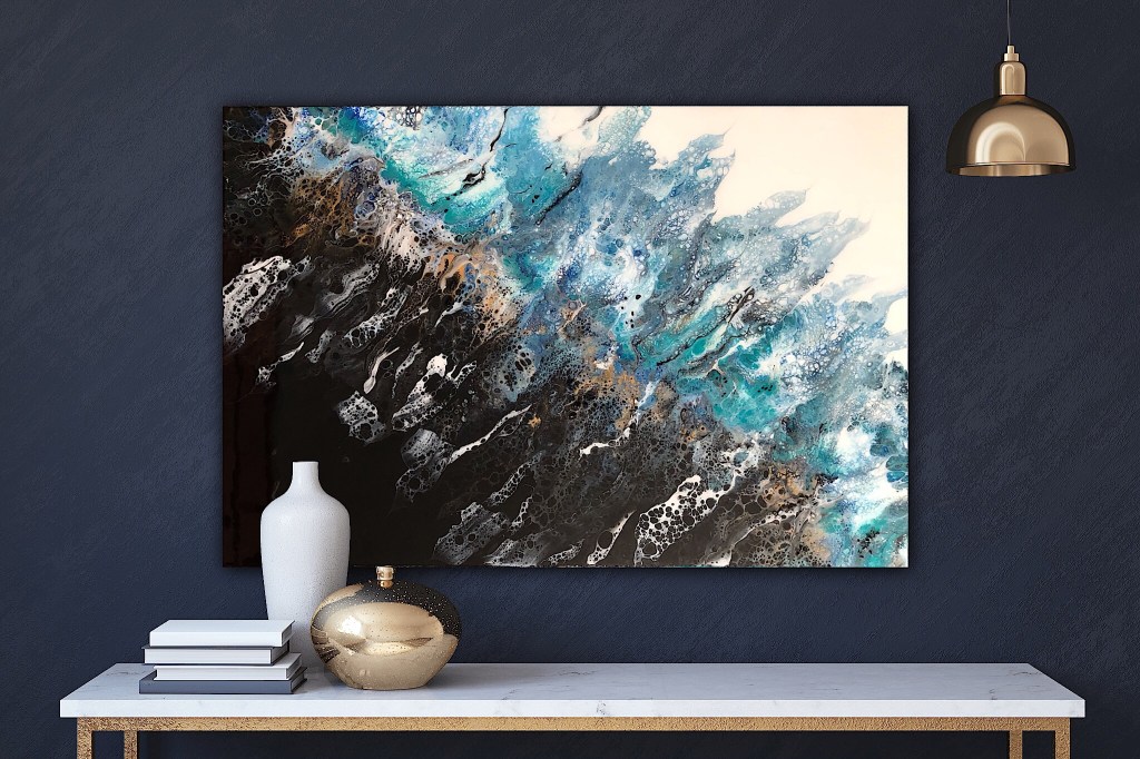 Dark ocean shore – 22×28” acrylic and resin . $708 including shipping