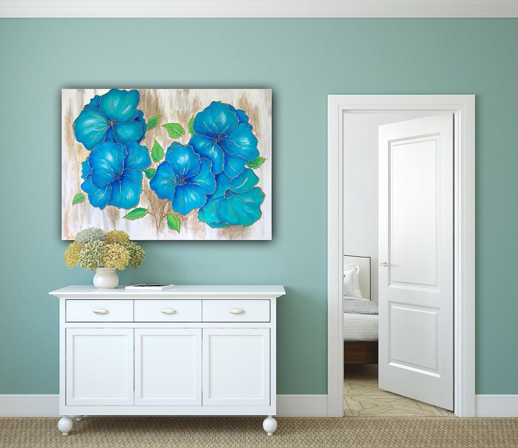 This page will show you several of my larger canvases. Most of them are larger than 24 by 24″. I love painting on the large canvas, as you can have so many things and so much movement added to one painting.