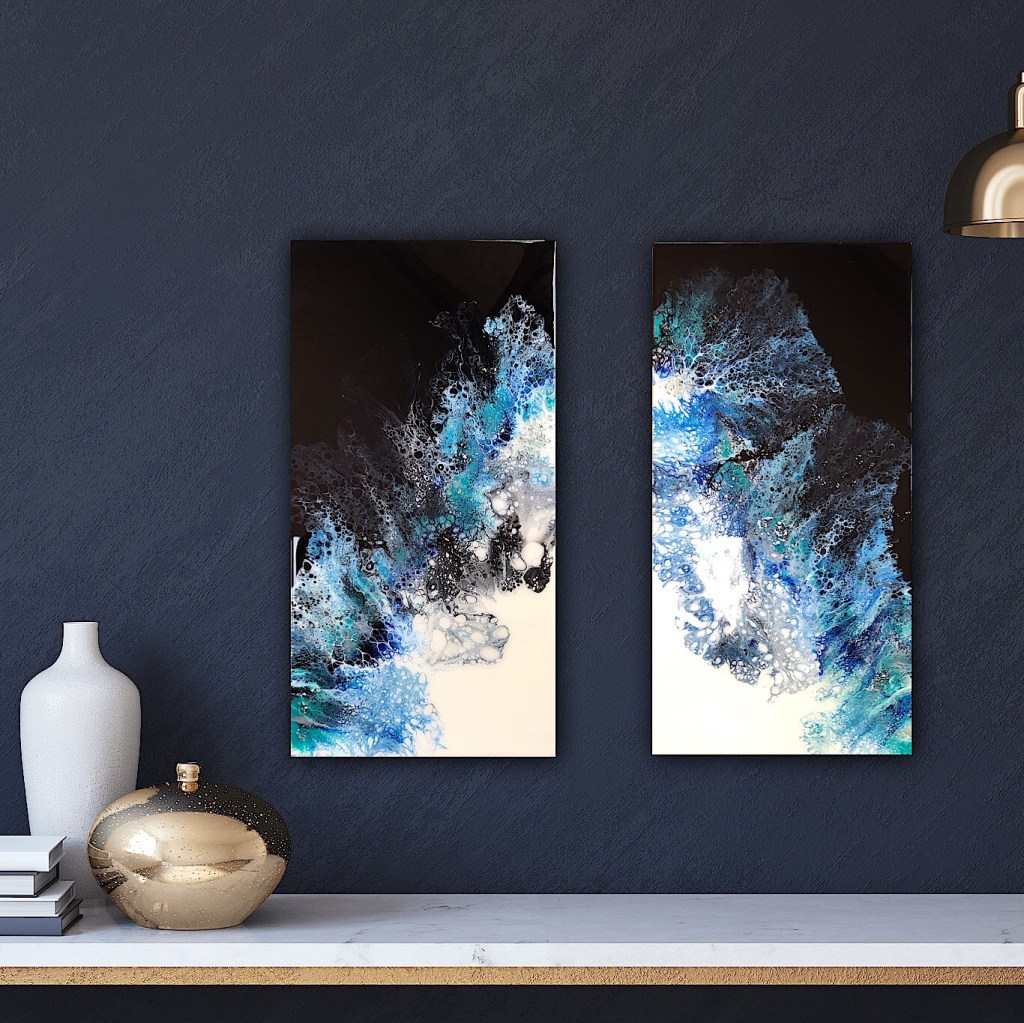 Blue Melody – 10×20″ acrylic and resin (sold)