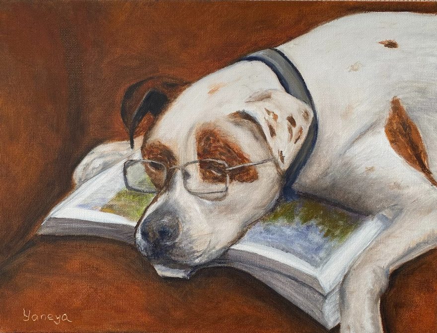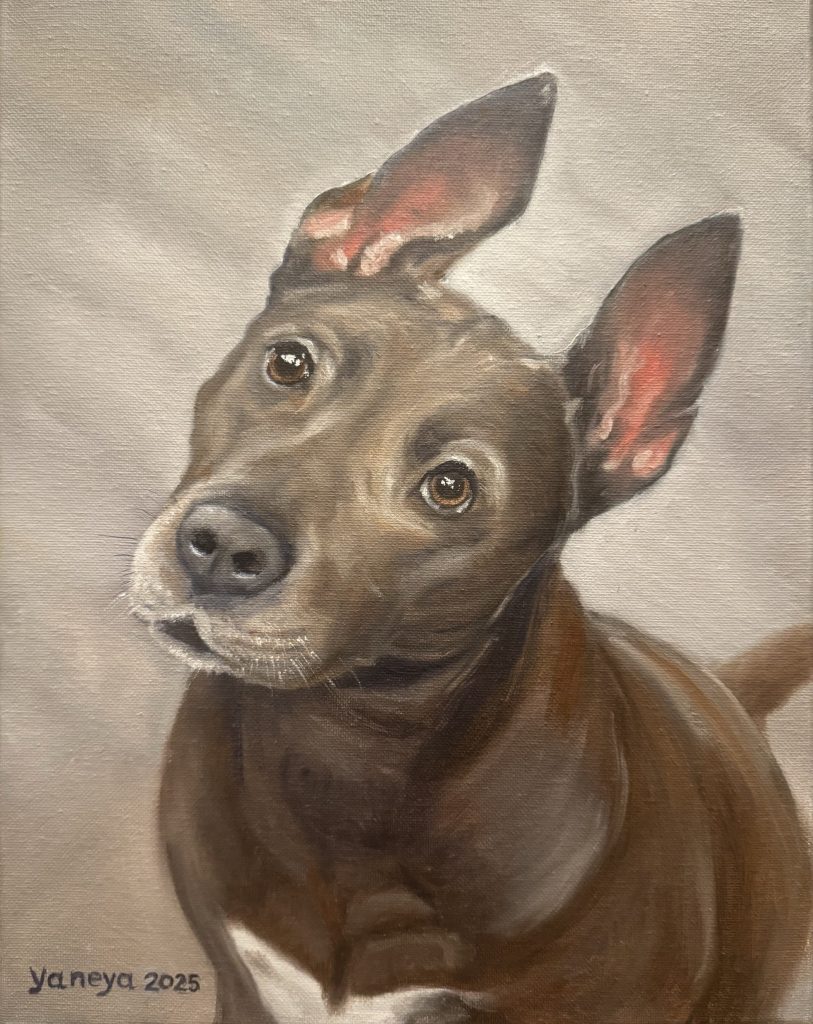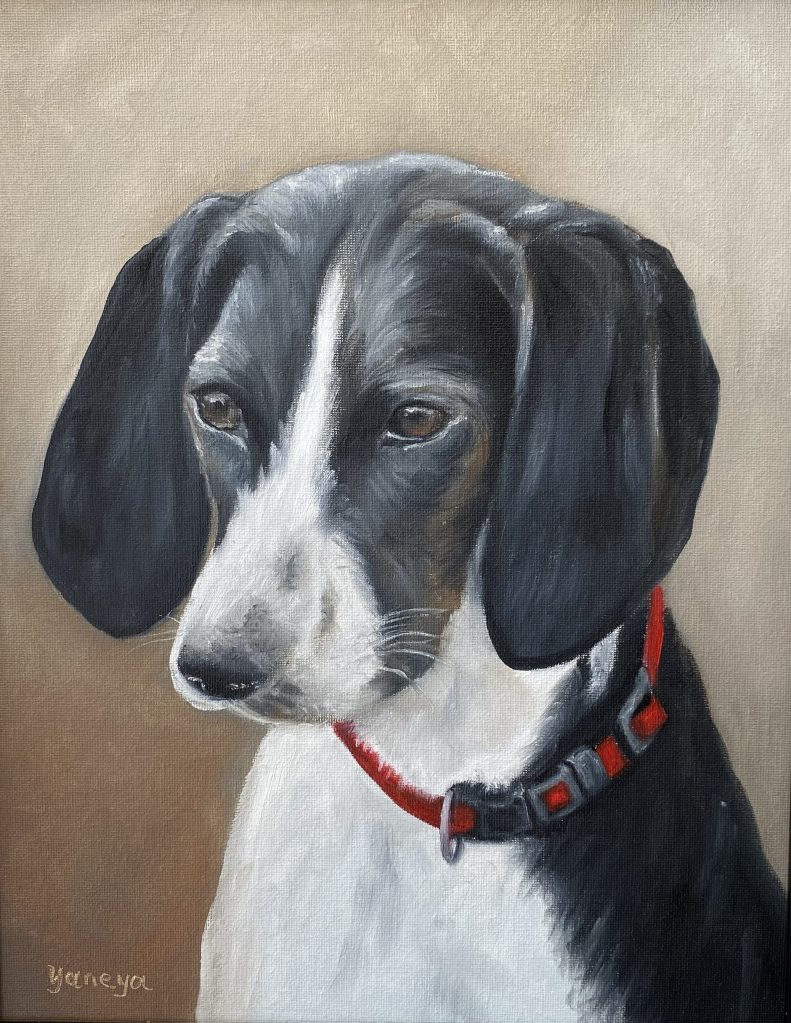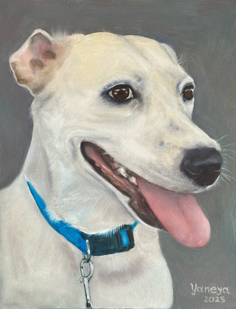 Greyhound mix. Oil on 11×14″ stretched canvas – commission. (Sold)