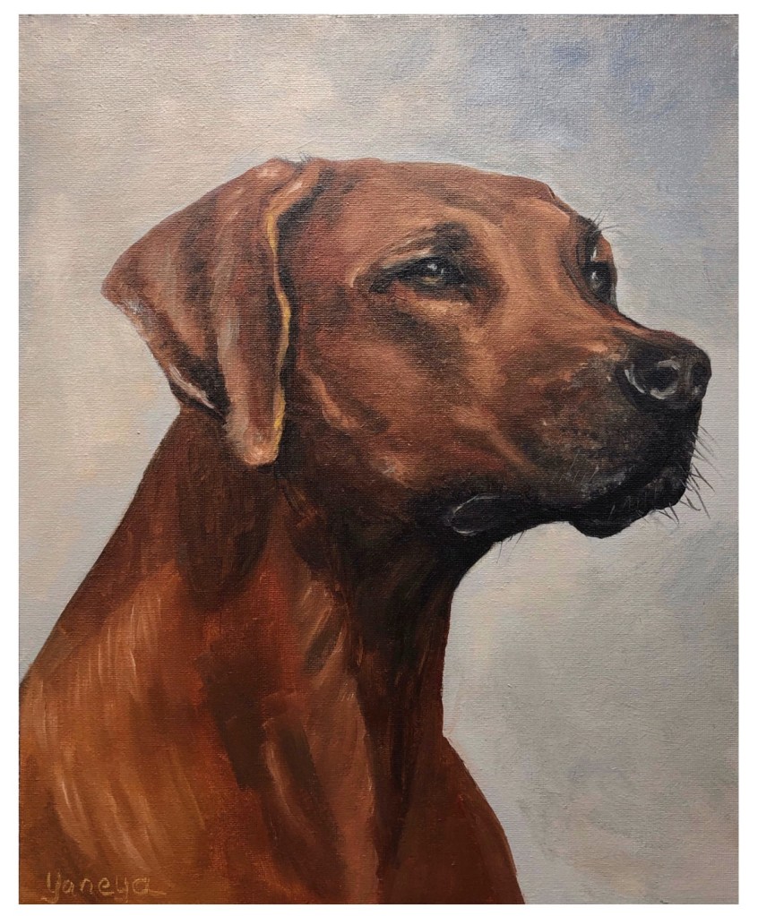 Rhodesian Ridgeback – oil on 11×14″ stretched canvas. Sold