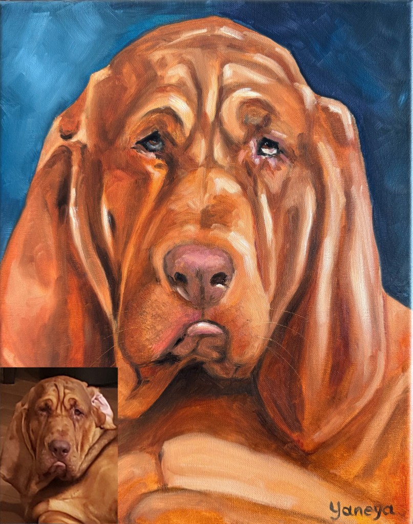 Bloodhound – oil on 11×14″ stretched canvas commission (Sold).